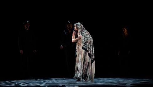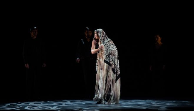Con una escenografía estéril cada vez que ha asomado —salvo en Ser, uno de los números de Alento, en la que Inmaculada Salomón se desliza con bata de cola y palillos por un columpio suspendido del cielo—, en la Soleá del Mantón todo lo ha ocupado este apéndice alado en manos de Esther Jurado, que se ha atrevido a emular a la gran Blanca del Rey en una de las coreografías más celebradas de la danza española. Los ecos de Manuel Torre en la voz del nieto de la Tomasa han reverberado tímidamente para impulsar esas raíces y alas de Jurado que han dado paso al archifamoso Bolero de Maurice Ravel, versión coregráfica de Rafael Aguilar. Danza estilizada de aire vintage que, salvo el vestuario, ha funcionado de menos a más hasta acabar envolviendo en un crescendo final al que se llega, con el mantra de la música y el sudor de los cuerpos elásticos y esa especie de cigarreras de Bizet con abanico, casi por agotamiento.