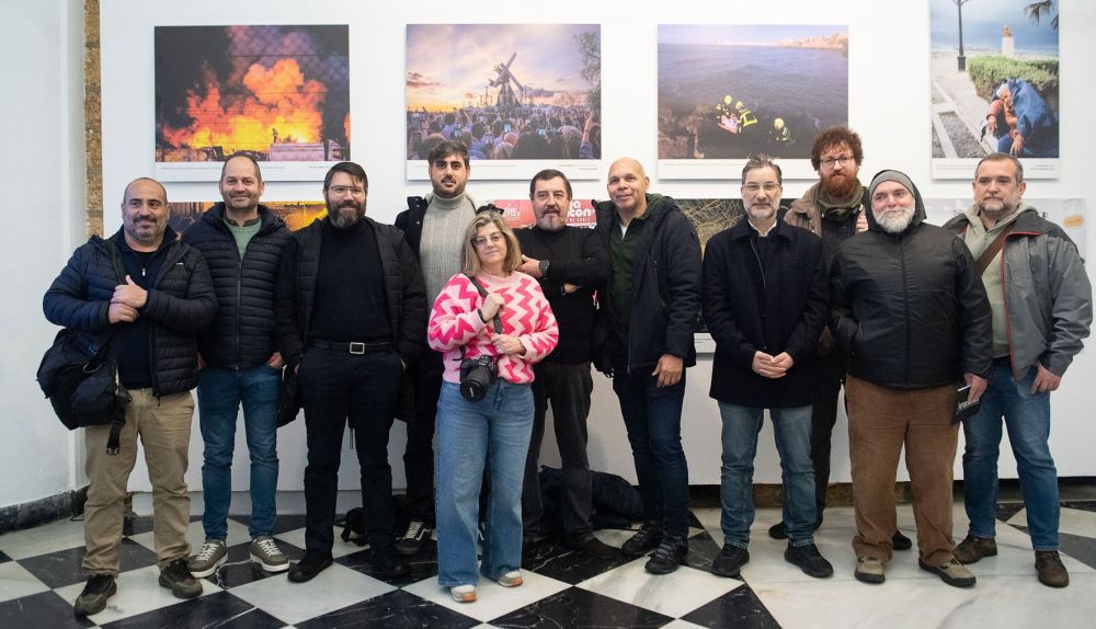 Foto de familia de fotoperiodistas de la provincia de Cádiz, en la inauguración de 'Fotocrónica'.
