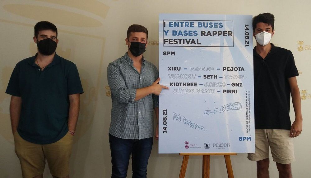 El delegado municipal de Juventud, José Alberto Cruz, acompañado de los organizadores del evento, ha presentado la primera edición Entre Buses y Bases Rapper Festival, que se celebrará el próximo 14 de agosto, a partir de las 20.00 horas, en las instalaciones del Centro de Iniciativas Juveniles Box de Chiclana. Un evento que contará con la presencia de distintos raperos y djs de la ciudad y de otros puntos de la provincia de Cádiz.