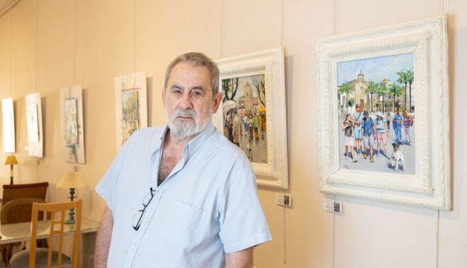 "Vivíamos de aquello, los dueños de las bodegas también eran accionistas de las artes gráficas. Por eso cuando se empiezan a vender las bodegas, todo empieza a caer", dice. Ante ese panorama, apareció la Expo de Sevilla de 1992, mudándose a la capital andaluza hasta que le dieron el "pelotazo". "A otras criaturas los arruinaron, a mí solo un poquito, pero fue un pellizquito en el ombligo. Con esos millones que no te pagan, me tuve que volver a Jerez", lamenta. Sin embargo, no hay mal que por bien no venga. Asentado con su familia en Jerez, dejó todo el equipo con el que trabajaba, de fotografía, ordenadores y montaje para el diseño, dedicándose plenamente a la pintura por encargo, un oficio con el que lleva ya un cuarto de siglo con gran ahínco en la ciudad.