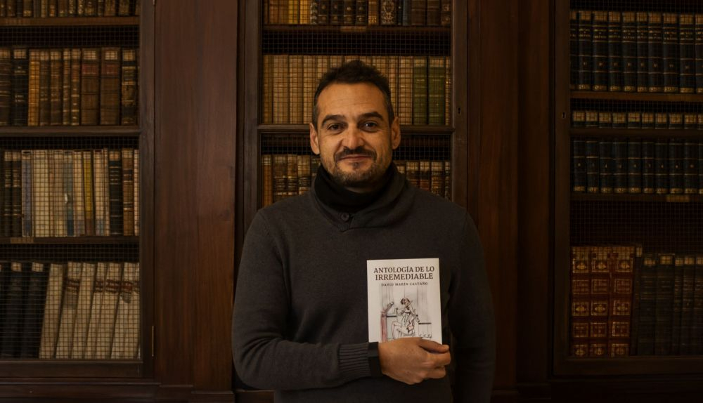 La segunda obra, Antología de lo irremediable, ha sido publicada por Editorial Autografía, explicó Camas. “Contiene más de cuarenta poemas, salpicados con las ilustraciones de su padre, Jesús Marín Echeverrría, a quien tenemos mucho que agradecer ya que el año pasado donó a la Biblioteca una colección de medio centenar de grabados sobre diferentes monumentos y rincones jerezanos.” Francisco Camas también resaltó las preferencias literarias de David Marín: Paul Auster, Irene Vallejo, George Orwell y, por encima de todo, Rubén Darío, “ese ser uno mismo que acompaña su creación literaria y que impregna la obra que hoy se presenta en esta biblioteca, templo de los libros.”
