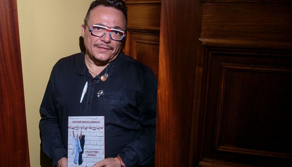 En una mesa decorada con calcetines de colores, Josefa Parra presentó el pasado lunes a Antonio Miguel Morales. Utilizó algunas de sus propias frases. Antonio dice “que no entiende el teatro sin la poesía”. Le gusta el teatro que “se sitúa justo en frente del poder para viviseccionarlo sin contemplaciones y encontrar así las causas de sus patologías”. Y dice que “escribe para cuestionarte, a ti lector, para comprobar si tus dudas coinciden con las mías o acaso las resuelve”. Francisco Mesa, de la Editorial Dalya y la Asociación MESVA, nos acercó al escritor a través del teatro en directo, con un monólogo: “La gallina, la metáfora y el gurú”.