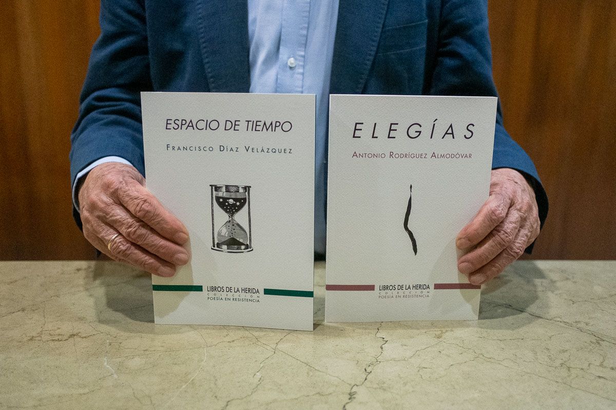 Josefa Parra considera a Antonio Rodríguez Almodóvar un maestro, sobre todo de la literatura tradicional, del cuento. Ana María Matute le llamaba “el tercer hermano Grimm”. Además de su propio libro de poemas, Elegías, José Rodríguez Almodóvar ha presentado Espacio de tiempo, de su amigo ya fallecido Francisco Díaz Velázquez. Las dos obras aparecen en la editorial sevillana Libros de la Herida, dentro de la colección Poesía en resistencia. El poeta y editor José María Gómez Valero ha contado que este proyecto editorial, que dirige junto a David Eloy Rodríguez, arrancó en 2005 con la publicación de Todas las puertas abiertas, de Pedro del Pozo. Aunque publican diversos géneros, la colección de poesía es el eje de la editorial.