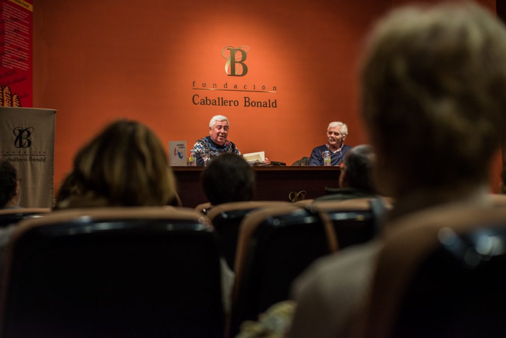 Luis Carreño ensalzó la labor de la Fundación Caballero Bonald en su afán por divulgar la obra de autores consagrados y noveles. Y recordó su participación en los primeros talleres de José Mateos, al que agradeció sus enseñanzas, su trabajo de editor y su amistad. También mencionó a sus compañeros de taller, con los que aprendió mucho y compartió sus escritos. Luis nos fue leyendo y comentando fragmentos de varios relatos del libro. El primer relato, precisamente, “El hombre empeñado”, habla de un señor muy tozudo, muy pesado, que no para hasta conseguir lo que se propone. Terco y obstinado, después de lograr ser profesor de instituto, se apunta a un taller de escritura donde escribe y escribe, y espera el veredicto del poeta y maestro… Hay relatos divertidos, surrealistas desde el principio, como “Pie rebelde”. Hay otros que empiezan rezumando felicidad y terminan complicándose e inquietándonos. Alguno de los cuentos le ha dado mucho trabajo… En uno policíaco se propuso jugar con las perspectivas de los personajes, pero le costó encontrar al que iba a contar la historia. Tampoco faltan serias reflexiones sobre el amor o descripciones de la fauna futbolística.