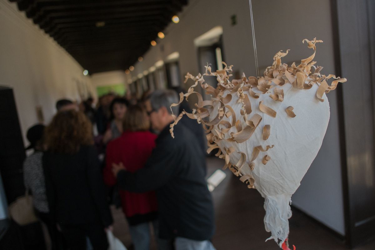 Hemos pedido a tres artistas que nos expliquen sus aportaciones. Serena Fortín nos dice que su obra: “Se titula Amor eterno, pero con una corrección, cancelando la N y sustituyéndola por una E: Amor etéreo... Como se trata de un corazón herido, lo he realizado en venda de gasa como si estuviera envuelto en ella, pero en realidad está vacío. Las virutas de madera que lo recubren y que formaban parte de esa "etereicidad" se van desprendiendo del corazón y se caen el suelo. Solo una es roja, pegada todavía en la gasa, que representa una única y discreta gota de sangre, porque ni siquiera está permitido expresar mucho ese sufrimiento de amor. Hoy, como muchas cosas, tampoco el amor es eterno.”