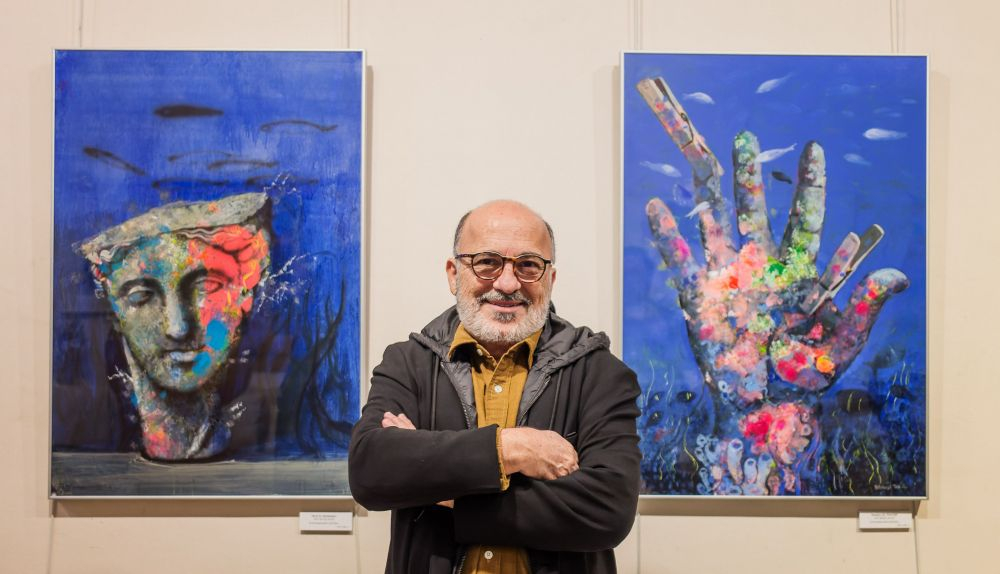 La serie Detritos de arte está formada por seis acrílicos sobre tabla. Vemos esculturas sumergidas en el agua, rodeadas de peces y otros seres de las profundidades. Son piezas clásicas, como cabezas de caballo, un toro de lidia, bustos de mujer o una mano. Las piezas parecen recuperar el color y la vitalidad en el fondo marino. Fernando Toro nos explica qué significado tiene: “Ese soliloquio que yo tengo arranca de ese cuadro de la mano del pintor que está cogida con pinzas y al final va a parar al mar. Así intuyo el arte: se está destruyendo. ¿Qué es lo que hacemos aquí en el planeta?, pues tirarlo todo al mar, las latas y los plásticos. Esa es la metáfora, que el arte va a desaparecer. Cada vez nos interesa menos. Los estudiantes cada vez lo estudian menos. Estoy haciendo una semblanza de lo que puede suceder dentro de muchos años. Y mi esperanza es que en el mar vuelvan a cobrar vida, que se rodeen de visitantes, de peces y algas.”