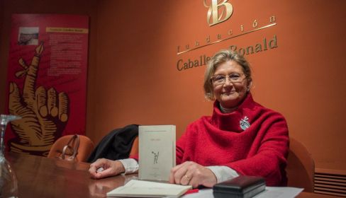 Josefa Parra nos presentó a Ana Sofía Pérez-Bustamante como una persona de gran valía intelectual en su labor de profesora, investigadora y poeta. Destacó sus trabajos sobre Pilar Paz Pasmar, Fernando Quiñones, Luis Berenguer y Álvaro Cunqueiro. Y como poeta, subrayó la calidad del poemario Mercuriales. El libro Sibilario obtuvo el XXII Premio Alegría de Poesía en 2018, y ha sido publicado en la serie Adonais, de Ediciones Rialp, “que para los que amáis la poesía ya sabéis lo que significa: no puede estar cualquiera en esa colección”, añadió Josefa Parra.