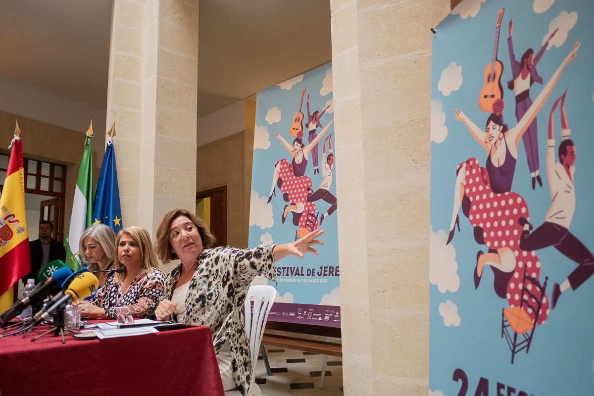 Con este ejemplo ha resumido la directora del certamen, Isamay Benavente, la relevancia y el prestigio que ha adquirido el Festival de Jerez a lo largo de estos más de 20 años, no solo para las cursillistas y aficionados, sino muy especialmente para el mundo del flamenco y la danza española. Solo había que ver en la mañana de este viernes el aspecto que presentaba el Palacio de Villapanés, frente al monumento de Lola Flores, repleto de artistas, medios de comunicación y autoridades expectantes por desvelar públicamente el cartel —diseñado una vez más por el artista jerezano Daniel Diosdado— de la próxima cita de un evento que, en su edición número 24, contará con 44 espectáculos en su cartel oficial (12 de ellos estrenos absolutos), 40 cursos y talleres —con alumnos procedentes de más de 30 países del mundo que ya han cubierto 700 de las algo más de mil plazas—, y diez peñas flamencas de la ciudad que ofrecerán unos mediodías flamencos maridados con la mejor gastronomía local.