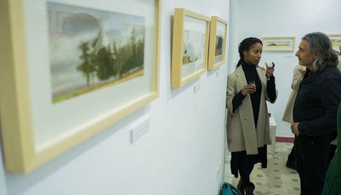 Con la Sala Barbablanca a modo de balcón de su casa, Terán asistió a una inauguración rodeado de amistades, familiares y conocidos que les mueve una misma pasión: el amor al arte. Mientras el dúo Novajazz, compuesto por Rubén Sánchez y Miguel Peñalver, amenizaba la tarde con su contrabajo y piano, asistentes de Madrid, Sevilla, Jerez y El Puerto, entre otros puntos de la geografía española, comentaban la ausencia de figuras humanas o animales en las obras de Terán, en las que el cielo copa casi tres cuartas partes del cuadro. "El único rastro humano son las casas". "No lo hago a propósito", respondió el pintor y protagonista de la tarde.