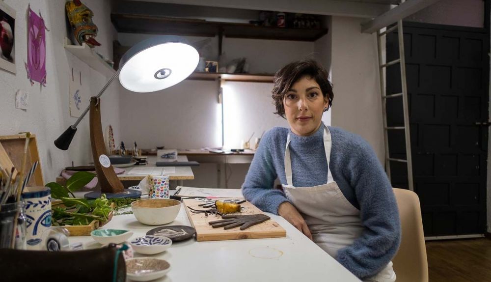 La ceramista Candela Campuzano, en su estudio. FOTO: MANU GARCÍA