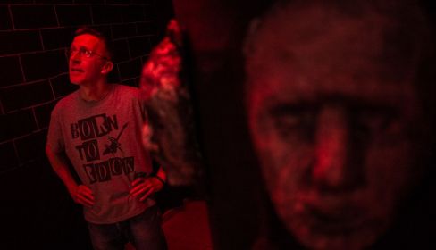 "Con 12 vendía cuadritos en bares, y he participado en exposiciones colectivas desde joven... Resulta una de mis primeras exposiciones, en las que participé de manera colectiva, fue en una sala de exposiciones que se hizo en el bar El Tragaluz hará ya 35 años. Y ahora... en la Sala Tragaluz, curioso", destaca, al tiempo en que se lleva un dedo al labio, mira hacia arriba y reflexiona. "Y oye, ha sido un reto el intentar tragar la luz de la sala", indica, sobre la sala que hasta el 26 de julio acoge su última exposición: Máscaras y escombros, trabajo al que le lleva dando vueltas casi un año. Pero, ¿qué hay detrás de su nueva muestra?