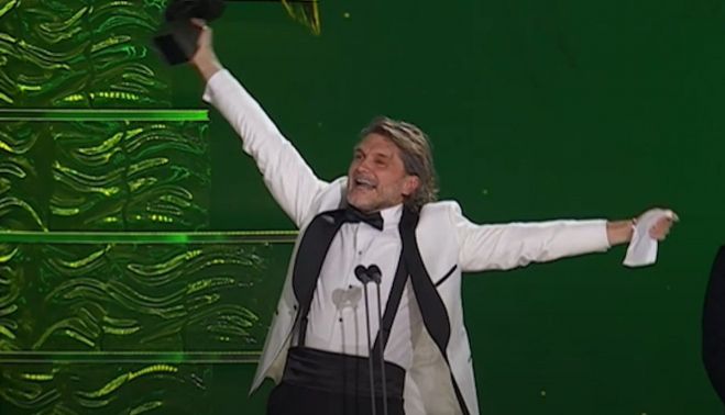 "Esto que polla es", ha dicho con gran emoción. El humorista ha llorado de felicidad al subir al escenario del Palacio de Congresos de Granada. Allí, ha levantado la estatuilla que reconoce su interpretación como Felipín, un migrante malagueño afincado en Cataluña.