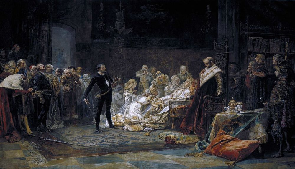 Poco le habló su madre sobre el tío bisabuelo el pintor... "Él estaba presente en los comentarios de vez en cuando, alguna cosa que decía mi abuelo…". Si bien con nueve años Adolfo jugaba en el cobertizo con "una tablita pintada de un niño subiendo por un árbol, un cuervo queriéndole picar y el niño, con cara de terror, se hace caca", desconocía el valor que podía tener aquella obra. Pero... ¿qué hacía allí escondida... abandonada? Adolfo narra que Salvador Sánchez-Barbudo consiguió que un mecenas, José Juan Fernández de Villavicencio, conocido como el marqués de Castrillo, lo llevase a Madrid, donde desarrolló su pintura de escenas costumbristas, con personajes de la alta aristocracia, mientras se preparaba las oposiciones para obtener una plaza de pensionado en Roma. Pero unos años antes de marcharse a Italia, en 1982, presentó su obra La última escena de Hamlet en la Exposición Nacional de Bellas Artes para obtener el premio nacional de pintura, certamen en el que consiguió la segunda medalla. "Él cogió tal cabreo, que le dijo a su hermano: Yo no vuelvo más a España". Y cumplió su palabra.