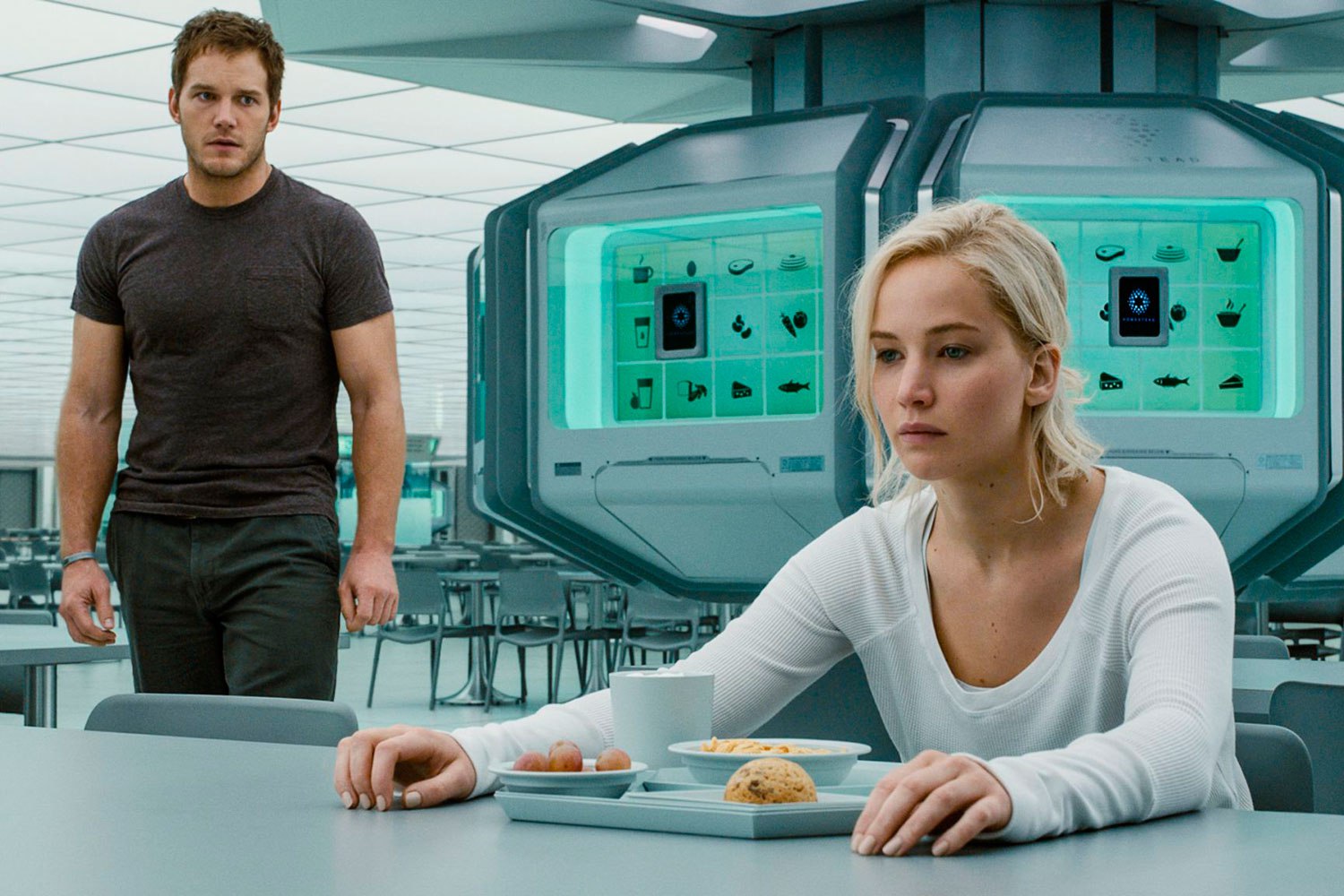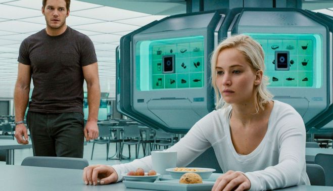 Los dos actores principales, Jennifer Lawrence y Chris Pratt, cumplen a la perfección sus papeles de jóvenes bellos y sin las cicatrices del desengaño y el tiempo. Ellos representan el amor romántico y autosuficiente, el esplendor en la hierba. Michael Sheen hace un gran trabajo, lleno de matices en su papel de barman biónico y confidente de los jóvenes. Laurence Fishburne tiene una intervención corta pero efectiva y útil para el desarrolllo del argumento.