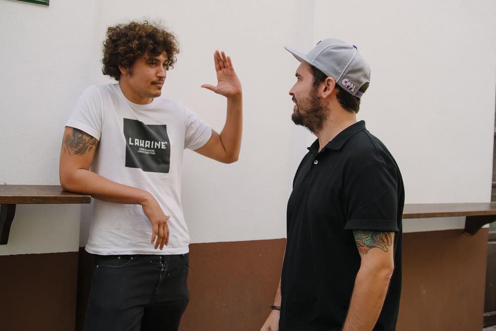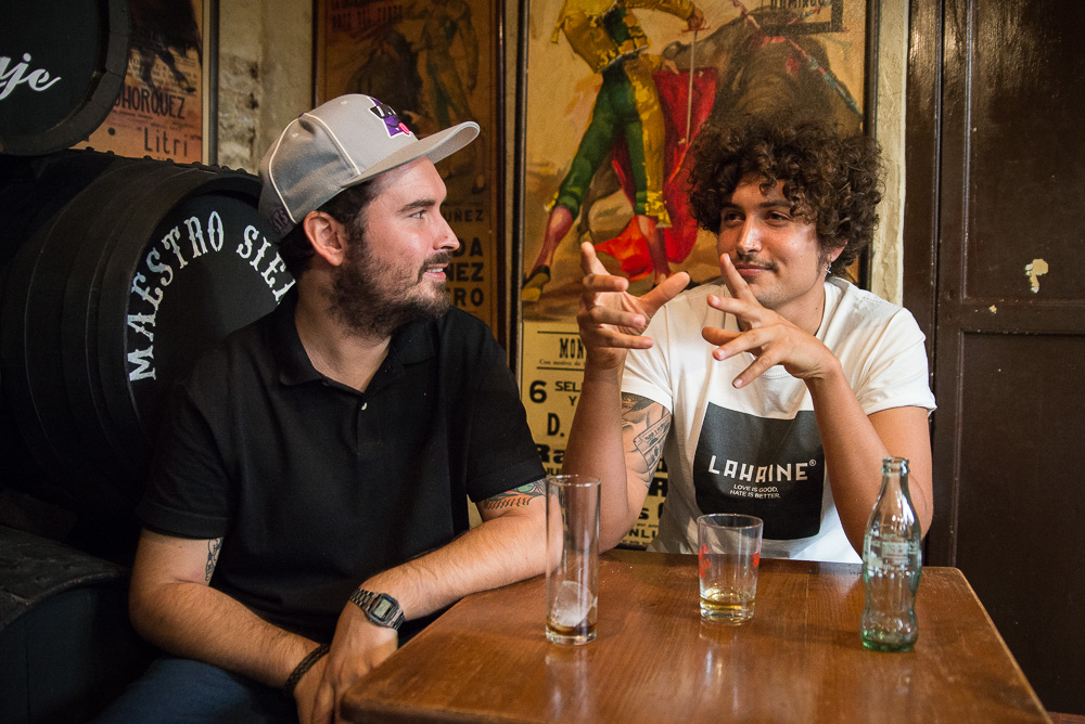 Juntos aspiran a vivir de la música. Carlos —Carlboro— pone las bases. Su amor por la música electrónica, sobre todo de los 80 y 90, se ve reflejado en las canciones de Space Surimi. Escucha a Egyptian Lover, Juan Atkins, Mr. Oizo… “Aunque ahora mismo me llevo todo el día trabajando y no me da tiempo”, confiesa. Hasta hace un año estaba en una tienda de muebles, pero la dejó para dedicarse por entero a la música. Por eso, y porque según él, “ya tenía el lomo en carne viva”. Su compañero confiesa que escucha de vez en cuando a El Torta, Luis de la Pica o Fernando de la Morena, aunque no es un “picao del flamenco”, dice. “Pero lo respeto”, añade. Él es más de punk y blues y también de grupos de rap de los 80: “Beastie Boys, Fat Boys… todo lo que acabe en boys, hasta los Backstreet boys”. Lo dice y se echa a reír antes de añadir: “A Nick Carter lo pondríamos a hacer dos o tres vendimias”.