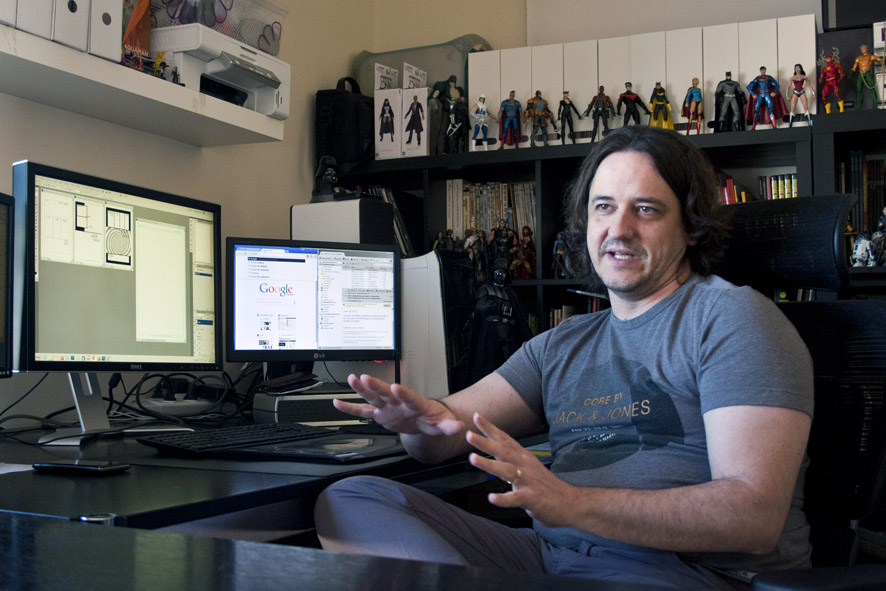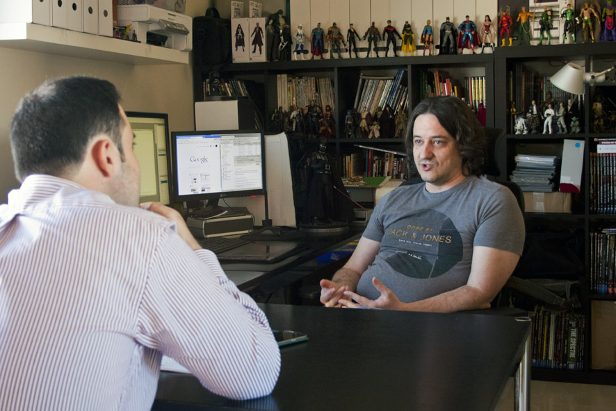 Me vi obligado por las circunstancias. Siempre me había gustado dibujar, lo tenía claro desde que tenía 3 años. Estudié arquitectura porque por aquella época era complicado introducirse en el mundo del cómic. Internet era aún una desconocida, y me sentía aislado, como en el culo del mundo. Decidí estudiar arquitectura porque era algo relacionado con el dibujo y pensé por aquella época que tendría más salidas. El dibujo seguía tomándomelo como hobby. Fue entonces cuando llegó esta crisis que tenemos actualmente. Estaba trabajando en Castellón y la burbuja inmobiliaria estalló. Empecé a darle vueltas al futuro y busqué las opciones que había. Una de las más claras era poder dar el salto profesional a los cómics. Preparé un portafolio donde recopilé todo el material de mi vida y me fui hasta Barcelona, al salón del cómic. Allí conocí a un representante de Marvel y a un chico muy majo de Planeta, el cual me orientó. A la gente de Marvel le gustó mi trabajo y empezaron a hacer un seguimiento de mis trabajos.