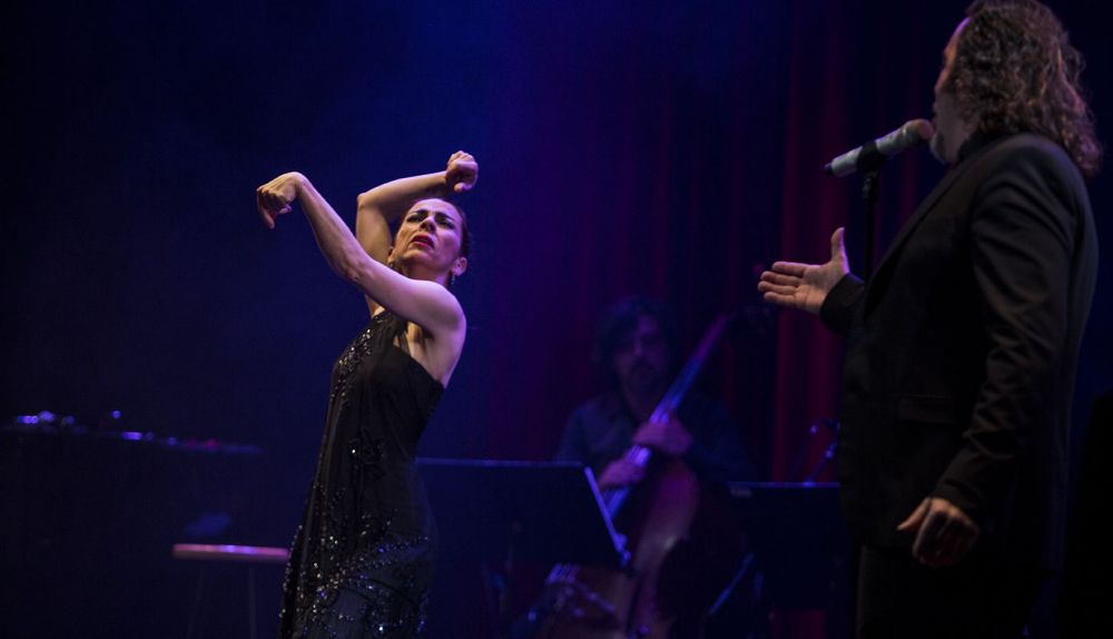 Sumergido en una suerte de Cabaret Voltaire, con sus sillas vienesas y ese eterno humo de cigarrillo flotando espeso, entre lo dadá y lo posmoderno, el espectáculo nos transporta a una guarida libre e independiente donde lo flamenco convive con el jazz, donde los tangos de Triana se vuelven porteños, donde los tanguillos de Mariana Cornejo y el Neoclor (por boca de Lagos) contrastan con el cante silente y en blanco y negro, y donde el cuplé por bulerías choca con la afligida seguiriya de Melchora como si fuesen dos trenes de mercancías. Ahí sobresale el toque arrollador de Santiago Lara, tan compenetrado con la gran protagonista del show como el resto de los músicos que tejen una alucinada partitura musical repleta de detalles, heterogéneas sonoridades y buen gusto.