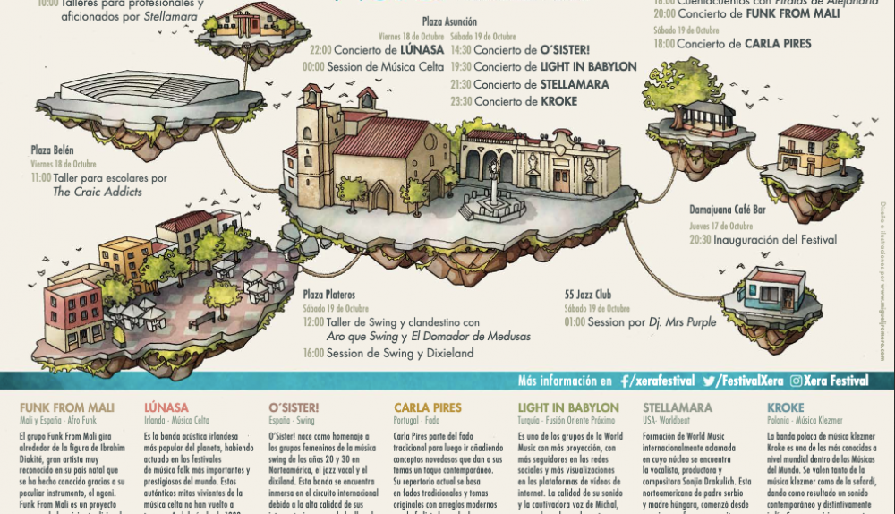 Xera Festival de Músicas del Mundo es un festival organizado por el Ayuntamiento de Jerez de la Frontera que se celebrará en diferentes plazas de nuestro centro histórico (concretamente en en el eje de plaza Asunción, plaza Arenal, Alameda del Banco, plaza Plateros y plaza Belén) hasta este sábado 19 de octubre.