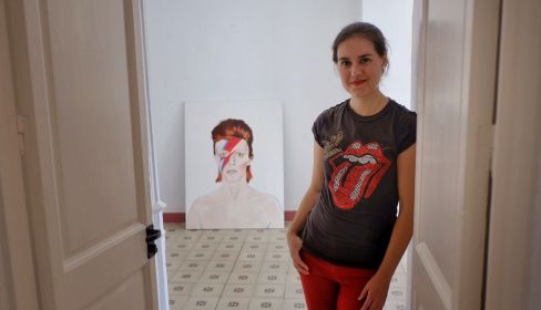 “We can be heroes, just for one day”, cantaba David Bowie. Un estribillo que, dependiendo del oído, traslada a un lugar u otro. La música de Bowie, el rey del glam rock, está conectada inconscientemente a un momento, y tanto su música, como su rostro, evocan una experiencia vivida... y al fin y al cabo, una sonrisa. Volver al pasado, recuperar esos instantes repletos de una banda sonora concreta, es el objetivo principal de la última exposición pictórica de la jerezana Leticia Millán. These boots are made for walking, de Nancy Sinatra, trastoca tu cerebro y te lleva atrás en el tiempo, o la emblemática Satisfaction de los Rolling Stones te arrastra hacia una pasada fiesta de cumpleaños. Todo es posible con la música, es hasta capaz de sobrepasar a la muerte. Amy Winehouse continúa viva. La reina del soul sigue entre nosotros no solo porque sus canciones suenen a diario en el transistor o estén de fondo en un bar, sino porque personas como Leticia Millán honran su memoria y hacen que su voz y sus letras, resuciten. Utilizando la música como un método para abrir la caja de los recuerdos, Leticia Millán expondrá este viernes 23 de junio en la Sala Barbablanca su muestra Inspírame. “¿Por qué inspírame y por qué la música?, yo necesito trabajar con música, en todos los registros, desde flamenco hasta ACDC, y cuando pensé en la exposición me dije: Dios mío, la lista sería infinita", explica. "Quería hacer un pequeño tributo a aquellos artistas que me ayudan a mí y que creo que inspiran a cualquiera", agrega abriendo bien los ojos y entre gestos que buscan complicidad.