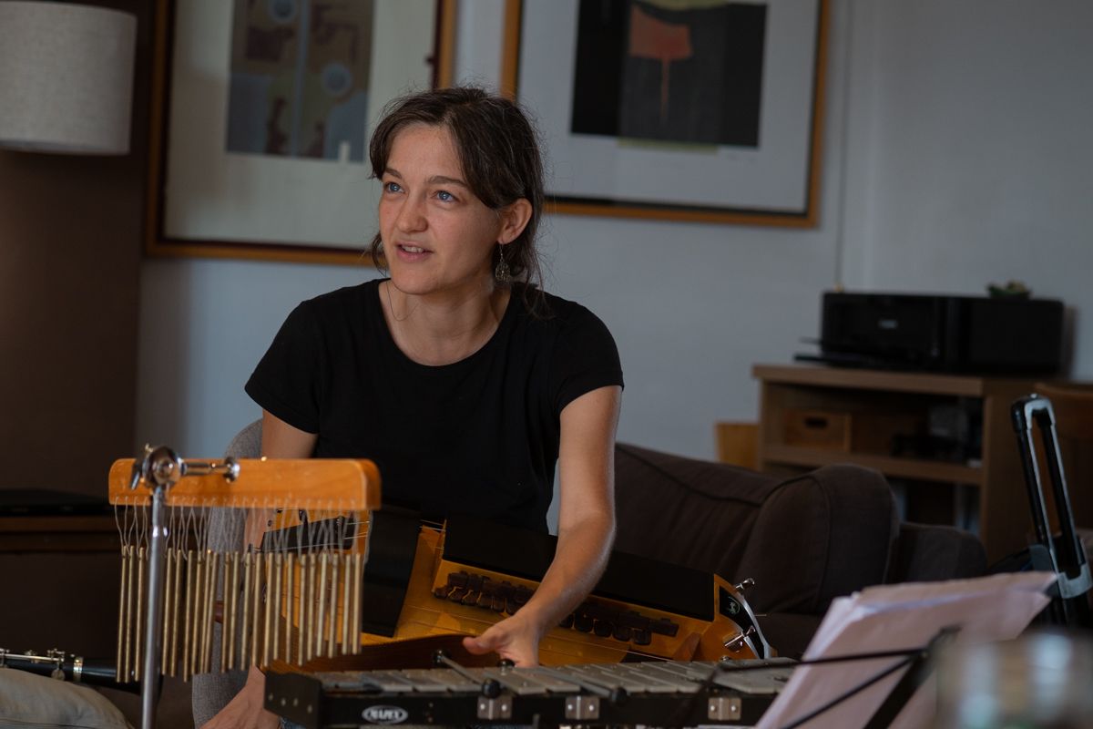 Elena Jiménez explica el proyecto de 'Uwa Caramba' rodeada de instrumentos. FOTO: MANU GARCÍA.