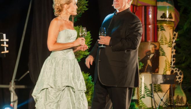 Acompañado del piano exquisito de José Ramón Martín, el cantante de Rochester ha evidenciado una enorme complicidad con su único acompañamiento musical, solo superada por los duetos que ha mantenido sobre el escenario con su mujer, la soprano Linda Wojciechowski. Especialmente aplaudidos han sido el dueto que han mantenido en la Già nella notte densa de Otello y en el que, como colofón a la noche, han interpretado Libiamo de La Traviata. Con esta pieza, precisamente, con la que han acabado brindando con Tío Pepe sobre el escenario, ha finalizado el concierto inaugural de esta experiencia sensorial múltiple que combina cultura, vino, gastronomía y tradición en el marco inigualable de González Byass.