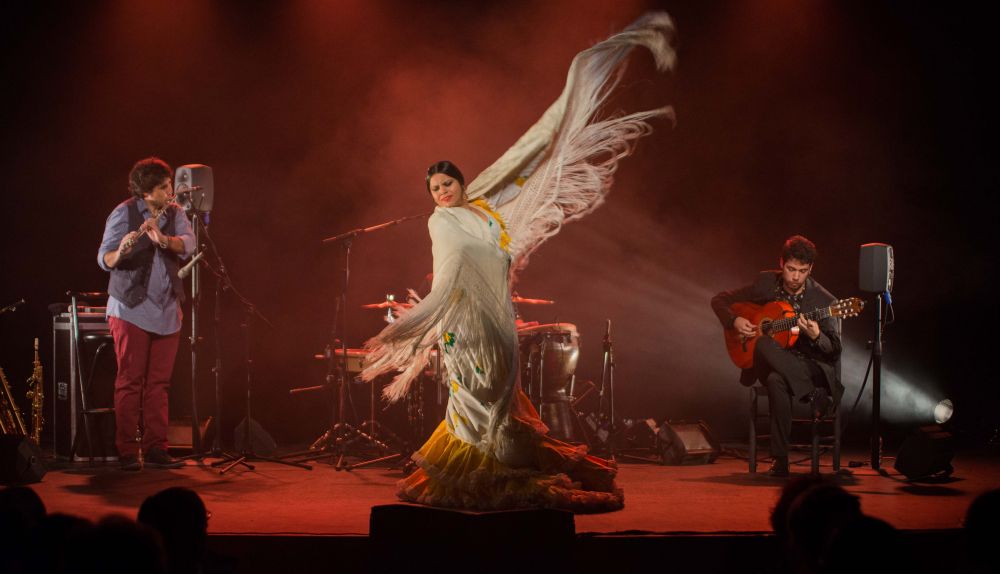 Diego Villegas entra en el concierto sin hacer mucho ruido y va creciendo conforme desenrolla Bajo de guía, un primer trabajo discográfico que ya tiene recorrido sobre los escenarios (no en vano, lo presentó en la Bienal del pasado 2016) y que, pese a las múltiples colaboraciones que almacena, en la Sala Paúl se ha presentado casi desnudo. Los vientos del músico sanluqueño solo han tenido el respaldo (lo que no ha sido poco en este caso) de la guitarra de David Caro, la percusión de Roberto Jaén y la pincelada bailaora justa y elegante de María Moreno. Y decía que ha ido creciendo como, intuimos, crecerá su música con el paso de los años. Aún se le aprecia cierto reparo tras dar el paso al frente protagónico, pero, así lo evidencia, se vuelve descarado cuando va rompiendo ciertas ataduras de un origen musical que nació una banda de su tierra y en el tablao de su hermana, y fue madurando en el atrás de infinidad de artistas que lo han ido alimentando hasta ser el músico que es hoy.