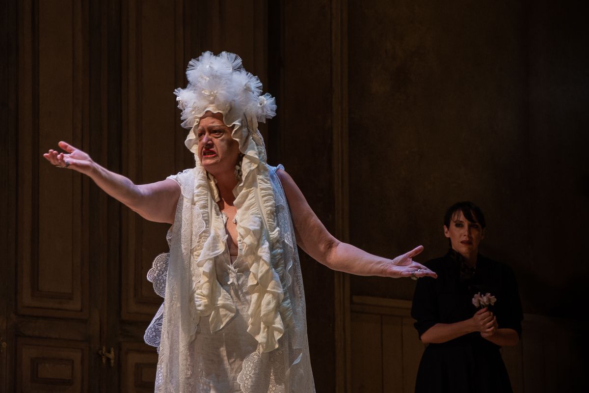 La Casa de Bernarda Alba, de Miquel Ortega (música) y Julio Ramos (libreto basado en Federico García Lorca). Teatro Villamarta, 2 de octubre de 2021. Aforo: Tres cuartos de entrada. Ana Ibarra (Bernarda Alba), Carmen Romeu (Adela), Luis Cansino (criada Poncia), Maribel Ortega (Martirio), Marifé Nogales (Amelia), Belén Elvira (Magdalena), Berna Perles (Angustias), Helena Dueñas (María Josefa), María Ogueta (criada). Orquesta de Cámara de la Sinfónica de Málaga. Miquel Ortega (dirección musical). Coro del Teatro Villamarta (dirección: José Ramón Hernández Bellido y Ana Belén Ortega Vilches). Producción del Teatro Villamarta en colaboración con el Teatro Cervantes de Málaga y el Festival de Música Española de Cádiz. Javier Hernández (dirección de escena), Jesús Ruiz (escenografía y figurines), Francisco López (iluminación).