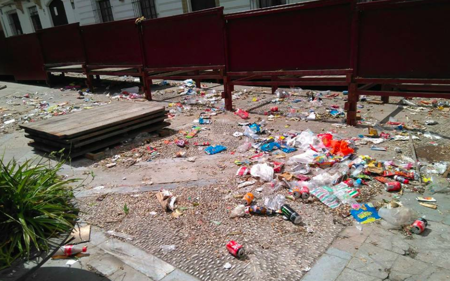 La Semana Santa, como las actividades nombradas anteriormente, es un acto especial y masivo, por lo que necesita de unos servicios especiales y masivos y, sobre todo, de unas campañas de concienciación especiales y masivas. Las imágenes de suciedad, orines y comportamientos incívicos en general van a más con el paso de los años. Y lo peor es que parece que se quiere seguir mirando para otro lado, facilitando la formación de una bola de nieve que cada vez será más incontrolable. Como siempre, los habitantes de Jerez acuden al centro y lo ven como si fuera un simple decorado donde poder actuar impunemente, sin tener la conciencia (ni querer tenerla) de que en los portales donde se mean o en las ventanas donde dejan vasos, latas y cáscaras de todo fruto seco existente vive gente. Son personas que sólo vienen al centro dos veces al año para dejar mierda, pero que luego reniegan del comercio local y se van a los grandes centros comerciales y tienen la desfachatez de aconsejar a los vecinos del centro histórico que se vayan a vivir al campo, la respuesta universal de quien no tiene argumentos para nada.