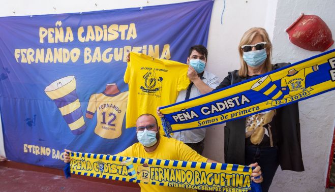 En el patio donde se reúne la peña cadista que lleva su nombre, ‘Fernando Baguetina’, se encuentran su madre, Mariángeles, su amigo e integrante de la peña, David, y su amigo y compañero de Brigadas Amarillas, Raúl. Están tranquilos, vienen de ponerle dos ramos de flores azules y amarillas en Fondo Sur, con el acompañamiento del presidente del club, Manuel Vizcaíno, y de Pepe Mata. Comentan, como buenos cadistas, “la malaje de haber esperado 15 años para no poder ir a ver al equipo en Primera”. “Con lo bonito que está el estadio”, suspira Mariángeles. A su madre le hizo cadista su padre y ella hizo lo propio con su niño Fernando. “Bague siempre decía que iba con su madre a todos lados”, apunta Raúl.