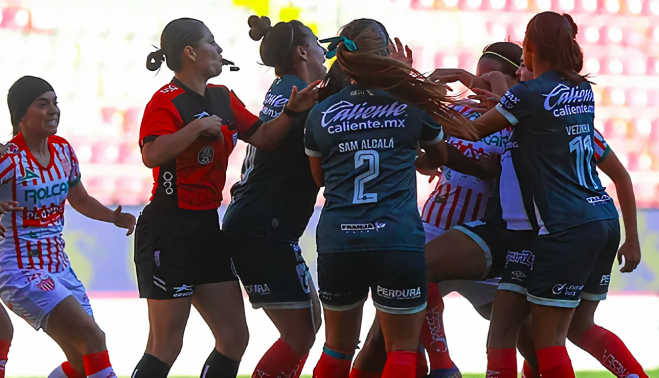 Todo ocurrió en el descuento del encuentro, cuando las jugadoras de Necaxa pidieron una falta cerca del área de su adversario. La no señalización de la misma acabó desatando la locura sobre el terreno de juego. Unas imágenes para olvidar que no representan para nada la esencia y pureza del fútbol femenino.