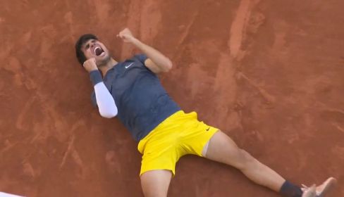 The moment Carlos Alcaraz won his first Roland-Garros title 🏆🇪🇸#RolandGarros pic.twitter.com/a57JqQMJ1O