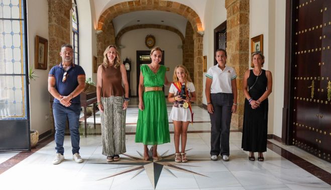 La joven chiclanera Rebeca Bello Fernández ha sido recibida en el Palacio Provincial por Almudena Martínez, presidenta de la Diputación de Cádiz, tras proclamarse campeona de España de Doma Clásica en la categoría Poni A. Con apenas 11 años, Rebeca ya se ha consolidado como una promesa en el mundo de la hípica, deporte con una profunda tradición en la provincia gaditana.