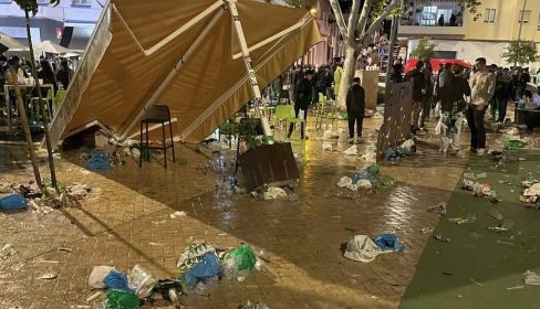 ❌ Destrozos en la plaza de Extremadura, donde aficionados han roto un toldo de la churrería pic.twitter.com/zNg36qC2gw