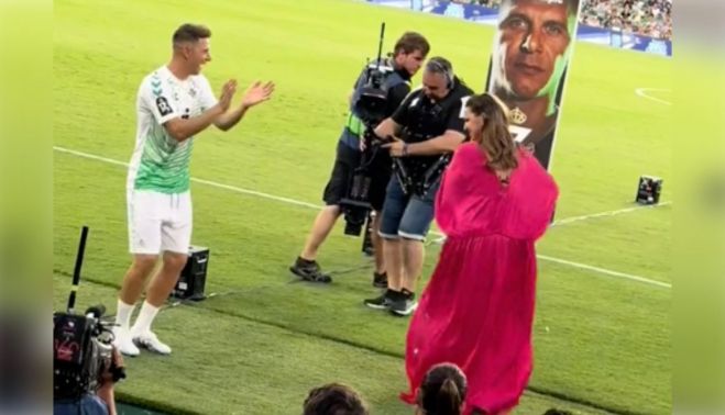 Numerosos fueron los momentos emotivos que dejó una noche de las que no se olvidan. Con Eva González como maestra de ceremonias, uno de los puntos álgidos fue la actuación de Niña Pastori sobre el césped interpretando Cai, una de las canciones preferidas de la leyenda verdiblanca.