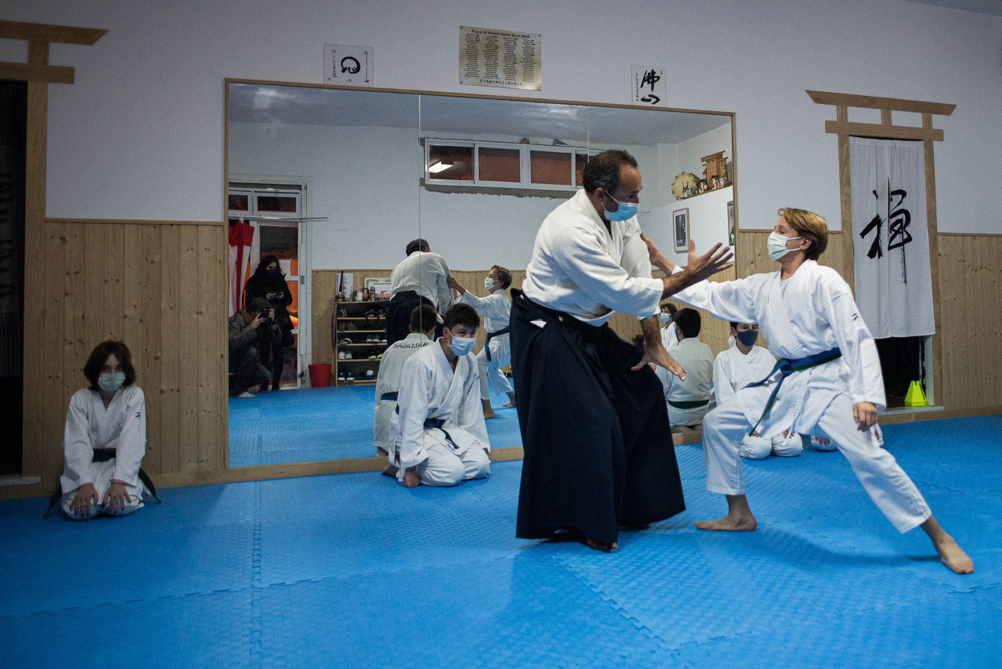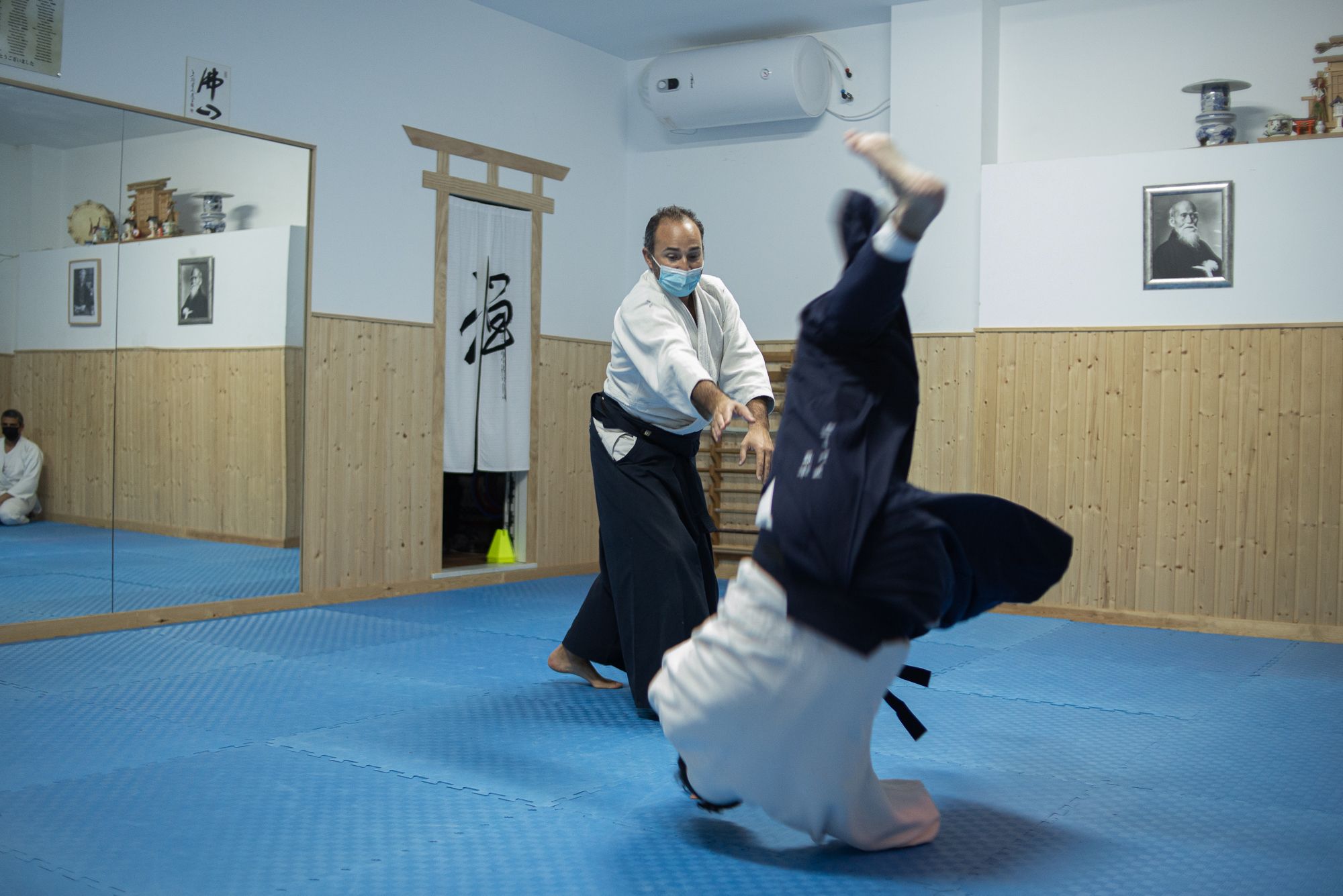 “Onegaeshi masu”. Es el saludo inicial de la clase de aikido que acaba de empezar en un dojo de Puerto Real. Un grupo de adolescentes realizan técnicas básicas en el centro cultural y deportivo japonés Isshin. Entre derribos e inmovilizaciones, un sensei (maestro) trasmite una calma abrumadora mientras da instrucciones. Eleva sus brazos y se desliza suavemente. Impera la paz en medio del caos. “Si fuera un deporte de combate la filosofía cambia, en un arte marcial el esfuerzo y mejorar como persona es la verdadera vía”.