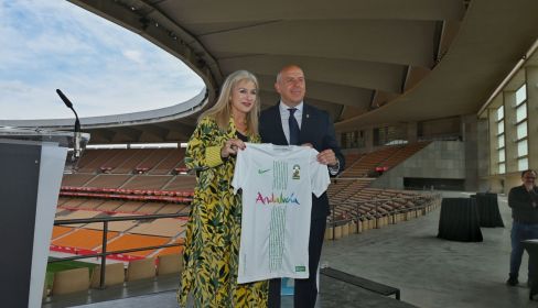 En el acto han estado la consejera de Deportes, Patricia del Pozo, junto a Pedro Curtido, presidente de la RFAF. Un acto que ha tenido lugar en La Cartuja, sede el próximo fin de semana de la final de la Copa del Rey entre Real Madrid y FC Barcelona. Minutos antes había estado Juanma Moreno, pero no se ha quedado para la presentación de estas camisetas, sino que la representación del Gobierno andaluz ha sido la consejera.