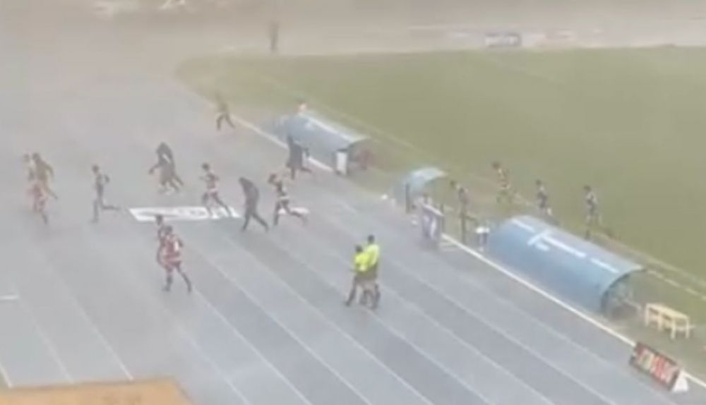 La tromba ha sido de campeonato, con un manto de agua que hacía impracticable el juego y que impedía que se pudiera seguir las acciones del choque.