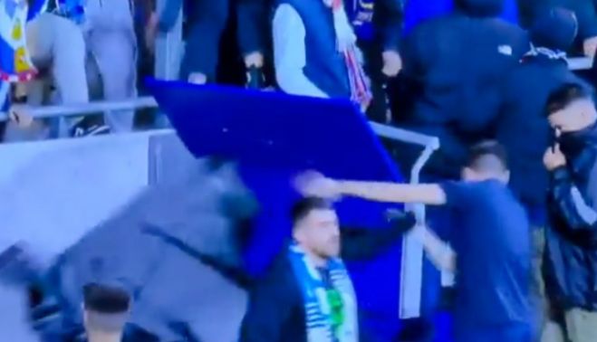 El seguidor radical tiró al suelo la cámara durante el asalto al césped. Aunque primero trató de tapar su rostro cuando estaba cometiendo el destrozo, luego fue identificado por otra cámara.