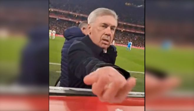 Estando Carlo Ancelotti, técnico merengue, en el banquillo visitante, un seguidor le realiza desde la grada la curiosa petición: "Ancelotti, dame un chicle".