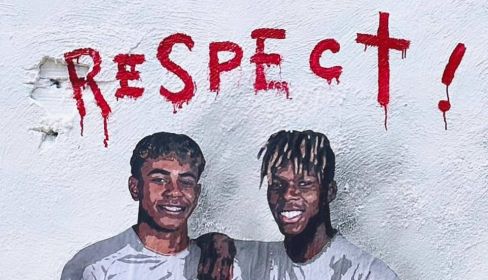 El grafitero ha retratado a ambos futbolistas sobre una pared blanca, en una pose de amistad y compañerismo, con Williams apoyado sobre Yamal, y ha pintado sobre ellos la palabra 'Respect!'.