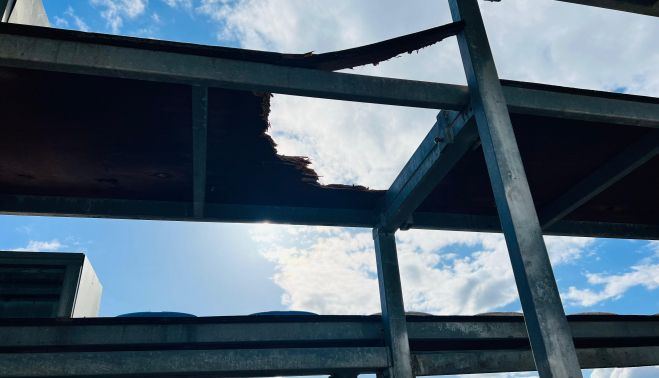 El peligro era muy grande por los agujeros que había en el suelo de las gradas y tuvieron que acudir sanitarios por la caída de algunos aficionados jerezanos. La Policía Nacional ha tenido que desalojar dos gradas, pero realmente había más porque el estado general no parecía apto para acoger a aficionados.