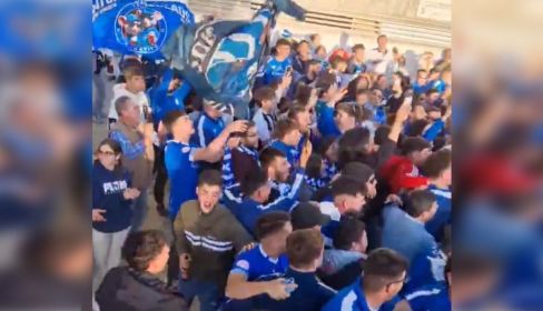 Al término del encuentro, la afición lo ha celebrado por todo lo alto. Un nutrido grupo de aficionados se ha puesto a bailar y festejar por todo lo alto la clasificación.