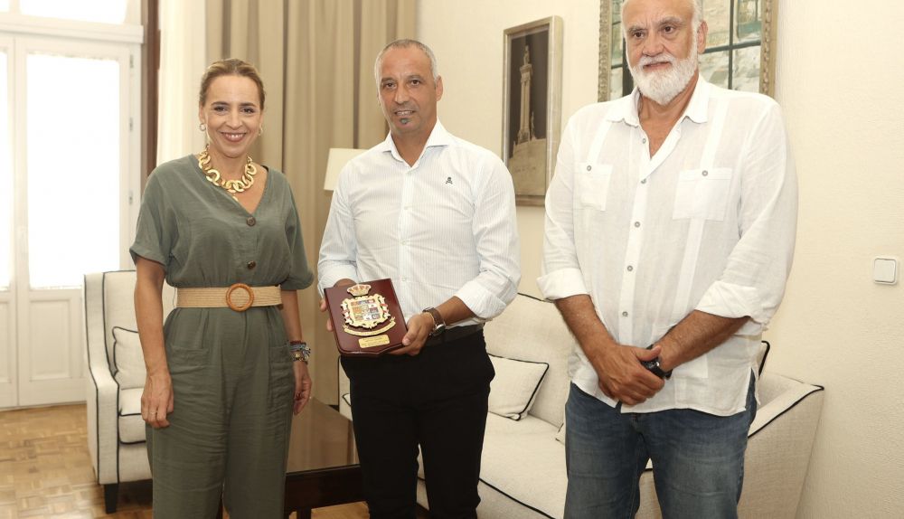 La presidenta de la Diputación de Cádiz, Almudena Martínez, y el vicepresidente segundo, Javier Vidal, han recibido en la Diputación al jerezano Antonio Vadillo, nombrado mejor entrenador del mundo de fútbol sala de la presente temporada.