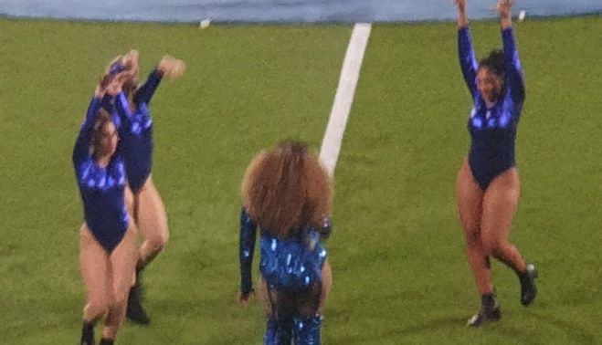 El Cádiz CF organizó un espectáculo musical a medio camino entre el show y las 'cheerleaders'. Una propuesta que incluyó vestidos prácticamente de bikini como animación antes del encuentro.