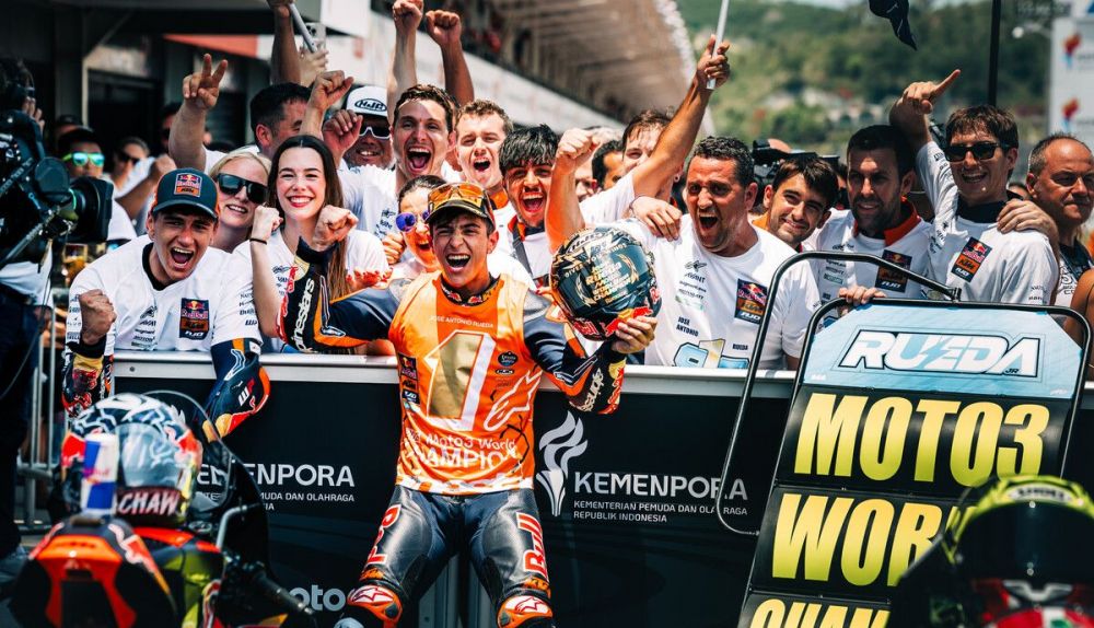 Rueda, que cumplirá 20 añitos el 29 de este mes, no ha podido evitar su sangre, sudor y lágrimas porque “soy muy sentimental”, ha añadido, recordando que “vengo de Los Chapatales, que incluso gente en Sevilla no sabe ni dónde está”. Memorioso como pocos deportistas de élite, exceptuando quizá al triunvirato con el que comparte patria chica –los futbolistas Jesús Navas, Fabián Ruiz y Gavi-, el chaval José Antonio, el flamante campeón del mundo, ha evocado que “allí solo hay campo, cabras y tractores” después de cumplir el sueño de su vida, que era ser campeón del mundo en Moto3 con este equipo. “Hoy lo he conseguido”, ha dicho, tentándose la ropa para terminar de creérselo.
