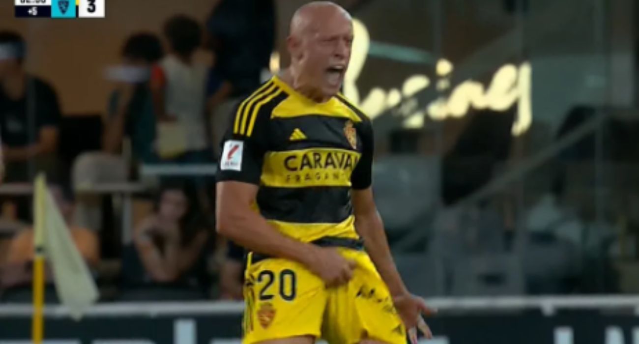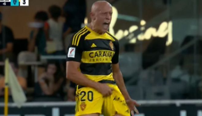 El jugador del Real Zaragoza, conjunto de la Segunda División, se hizo un Rubiales al llevarse la mano a los testículos. Un desafortunado gesto que LaLiga tiene previsto denunciar.
