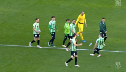 El Betis ganó al Sevilla FC el derbi de Copa del Rey que tuvo que ser aplazado tras la agresión a un futbolista sevillista. El encuentro, reanudado este domingo, acabó 2-1 a favor de los verdiblancos, que lo celebraron sobre el terreno de juego.