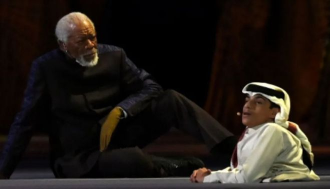 Ghanim Al-Muftah, un qataría de 20 años que sufre una malformación de nacimiento y fue elegido por la FIFA para representar la teórica "inclusión y diversidad" del país árabe, apareció durante un momento de la gala junto al actor Morgan Freeman.