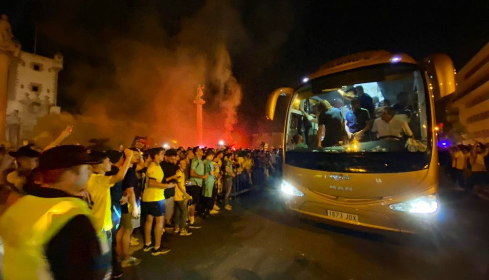 El estallido de felicidad de la parroquia cadista se sintió en toda la provincia, y más allá, pero especialmente en la capital gaditana, donde literalmente la hinchada se echó a la calle a esperar a su equipo.