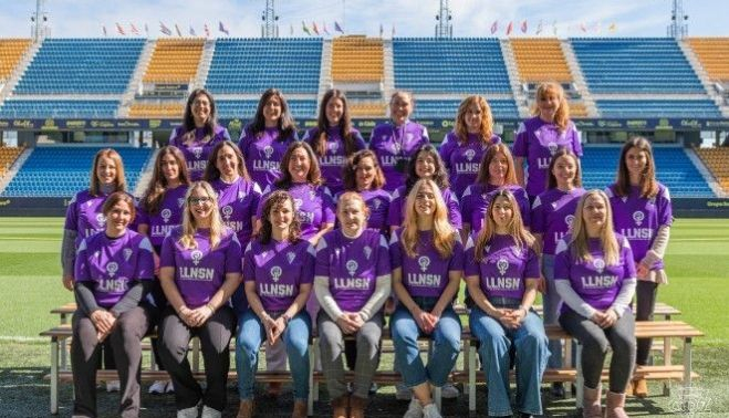 La lucha contra el machismo y el sexismo es innegociable. En el Día Internacional de la Mujer, el Cádiz CF ha querido resaltar la importancia y dar visibilidad al papel de la mujer trabajadora en la entidad amarilla. Las trabajadoras del club han posado en una foto en el terreno de juego del estadio con la indumentaria morada diseñada especialmente para este día. Una camiseta que ya lucieron los jugadores del primer equipo en el partido del pasado domingo frente al Rayo Vallecano.